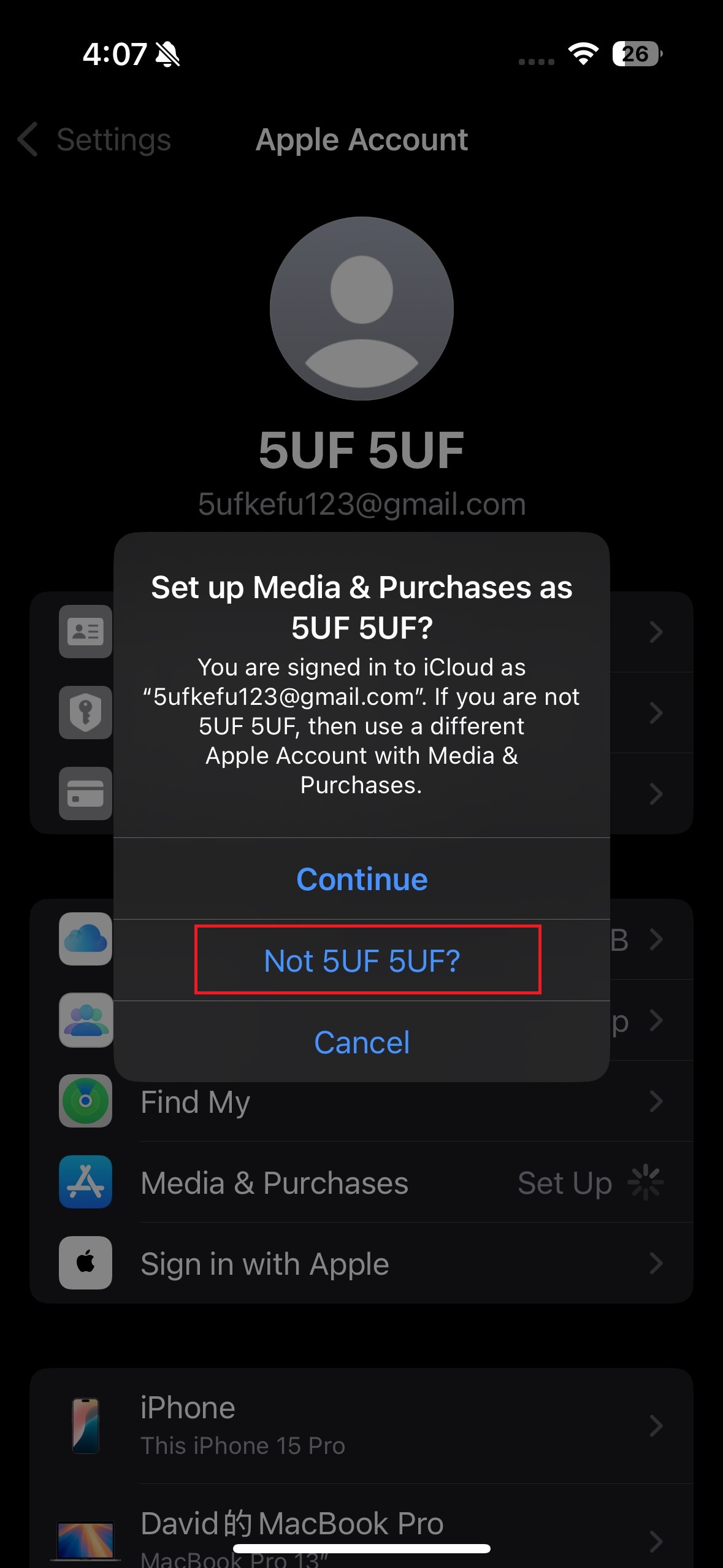 **答:**你可以選擇退出當前“媒體與購買”中的 Apple ID,然後使用你在中國大陸注冊的 Apple ID 登錄。由於這兩個賬戶都是你自己的,你可以根據需要自由切換,以下載特定地區的應用程序。