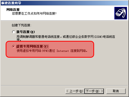 第四步:选择“虚拟专用网络连接”,点击“下一步”